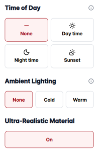 Then, select from pre-configured lighting scenes such as daylight, ambient, sunset or night. You can also add simple prompts for additional refinement if needed.